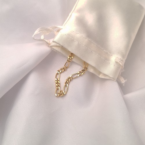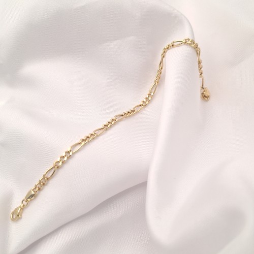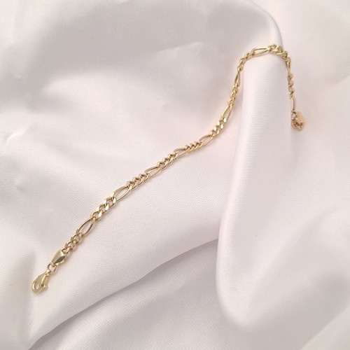 Gerçek 14 ayar altından el işçiliğiyle üretilen Figaro zincir bileklik, klasik tasarımıyla her dönemin vazgeçilmezi olmaya devam ediyor.