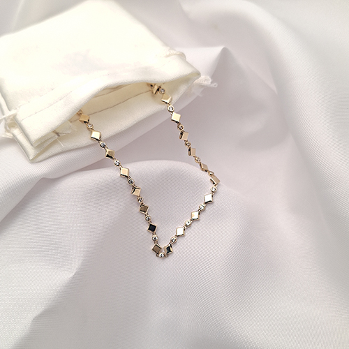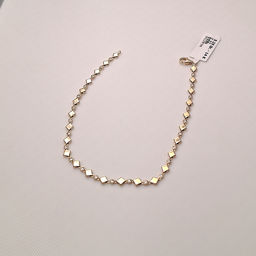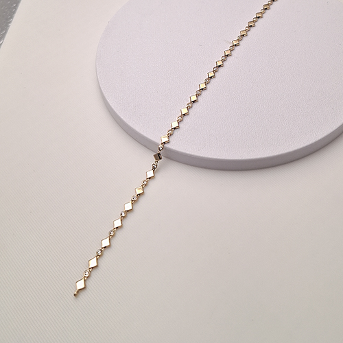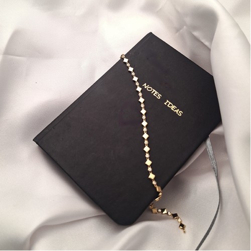 3,25 gram ağırlığındaki bu değerli model, geometrik formlu zincir yapısı ve parlayan zirkon taşlarıyla bileğinizde göz alıcı bir duruş sergiler.