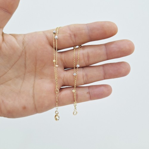 14 Ayar İkili Dorika Toplu Zincir Bileklik – Çift Katlı Işıltı ve Modern Zarafet