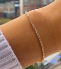 Gerçek 14 ayar altından üretilen taşlı su yolu bileklik, zarafeti ve ışıltıyı bir araya getiren ince bir tasarıma sahiptir. 2,25 gram ağırlığındaki bu zarif model, taş detaylarıyla bileğinize şık bir parıltı kazandırır.