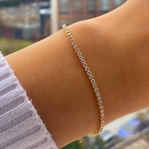 Modern çizgisiyle hem günlük kullanıma hem de özel davetlere uyum sağlayan bu bileklik, sade ama göz alıcı duruşuyla her stile sofistike bir dokunuş katar.