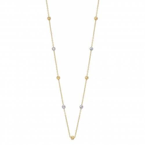3,03 gram ağırlığındaki zarif ve hafif yapısı, boyunda yokmuşçasına konforlu bir kullanım sunarken, kolyeye hareket katan Dorika topları her adımda ışığı yansıtır.