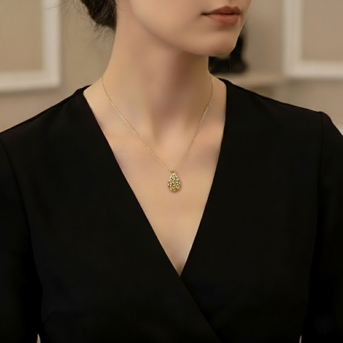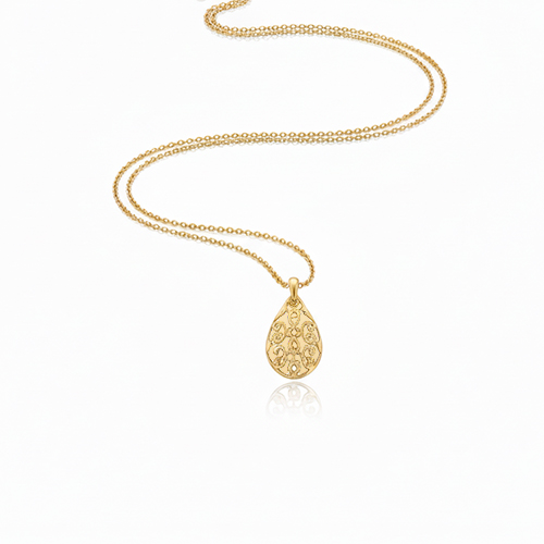 14 Ayar Altın Oymalı Damla Kolye – Zamansız Zarafetin Simgesi