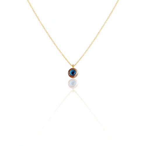 Gerçek 14 ayar altından el işçiliğiyle üretilen Nazar Boncuk Kolye, geleneksel inancın zarif ve modern bir yorumudur. Mavi göz motifi, kötü enerjiden korunmayı simgelerken, altının sıcak ışıltısıyla birleşerek etkileyici bir denge oluşturur. 0,93 gram ağırlığındaki bu model, hafifliği ve minimal tasarımı sayesinde günlük kullanıma son derece uygundur.