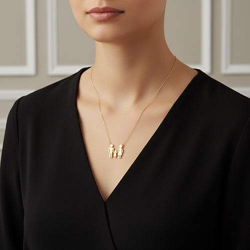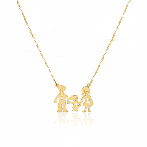 - Tasarım: Anne–baba–çocuk figürlü aile kolyesi