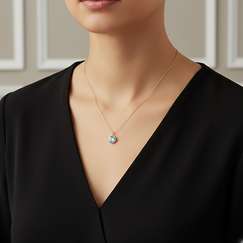- Tasarım: Altın çerçeveli aqua mavi taşlı kolye