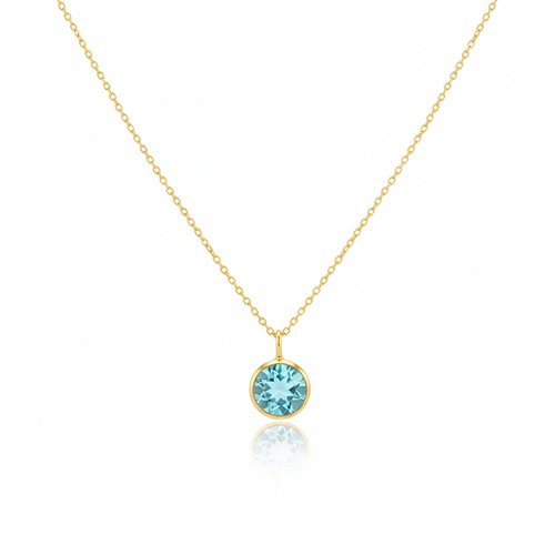 14 Ayar Altın Aqua Taşlı Kolye – Zarif ve Büyüleyici Mavi Işıltı