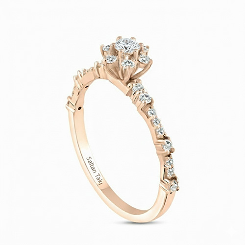 Lotus çiçeğinden ilham alınarak tasarlanan bu özel model, zarafetin en saf halini temsil eder. 14 ayar pembe altın formu ve ışıltılı pırlanta dizilimi ile yüzükte çiçek formunda benzersiz bir parlama etkisi oluşturur. G renk ve SI berraklık kalitesine sahip pırlantalar, ışığı maksimum seviyede yansıtarak göz alıcı bir ışıltı sağlar. Hafif ve konforlu yapısıyla günlük kullanıma uygundur ve özel günlerde şıklığınızı tamamlayan zarif bir mücevher olarak öne çıkar. Uluslararası sertifikası ve el işçiliği kalitesiyle uzun yıllar değerini koruyan prestijli bir pırlanta yüzüktür.