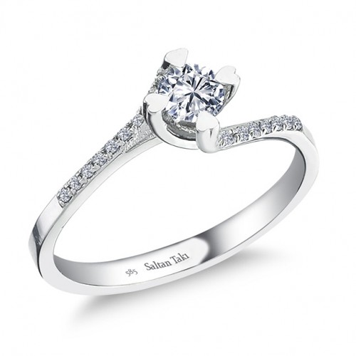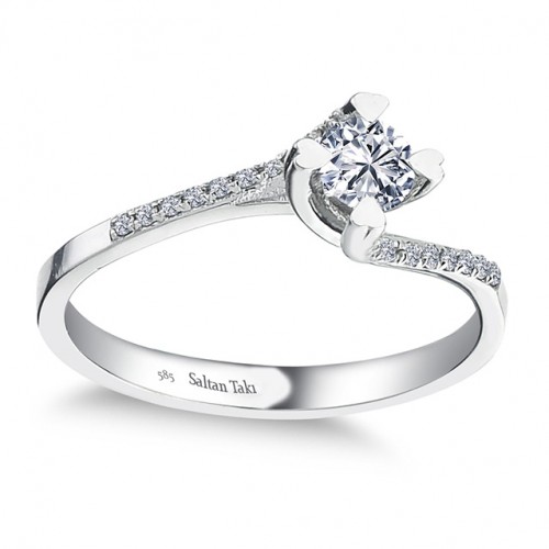 14 Ayar Beyaz Altın 0,40 Karat Pırlanta Tektaş Yüzük